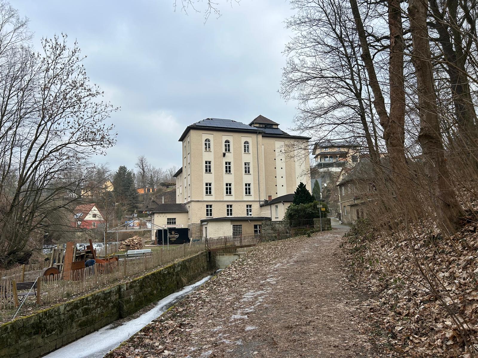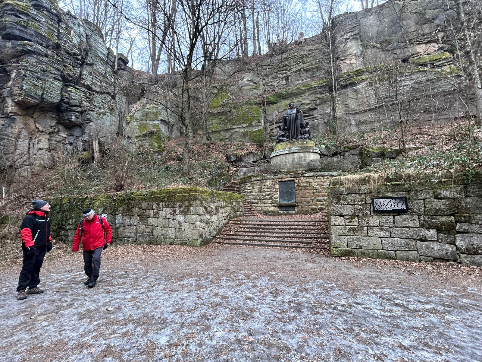 Bei Klängen zur Ouvertüre des Lohengrin wurde das größte Denkmal in der Welt für den Komponisten bewundert. Weiter ging es zur Lochmühle und dann über die Brücke zur anderen Seite der Wesenitz. Alles über stark vereiste Fußwege und bei höchster Aufmerksamkeit.