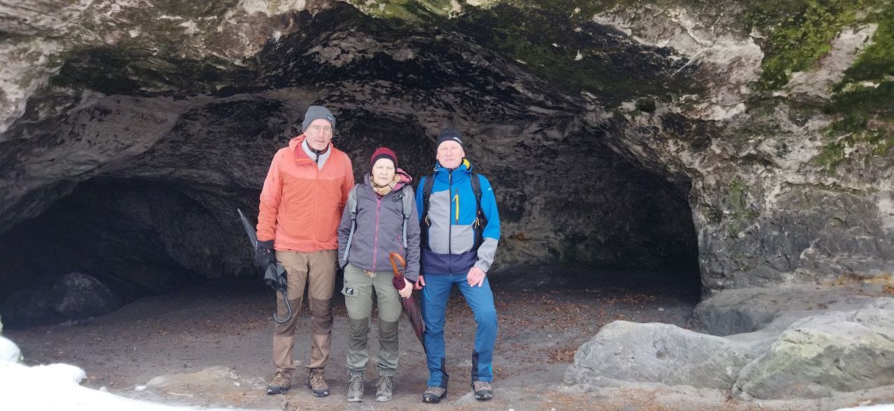 Nein, die Klubtour im Februar ist natürlich nicht ausgefallen. 3 unerwegte Bergpiraten und 3 Gäste haben sich in Rathen an der Fähre zusammengefunden, um die Wanderung zum Gamrig zu starten. Bei Nieselregen wurde beschlossen, nicht die große Runde zu laufen, sondern eine verkürzte Tour zu absolvieren. Am Gamrig angekommen, konnten wir an der Höhle dem Regen etwas entgehen.